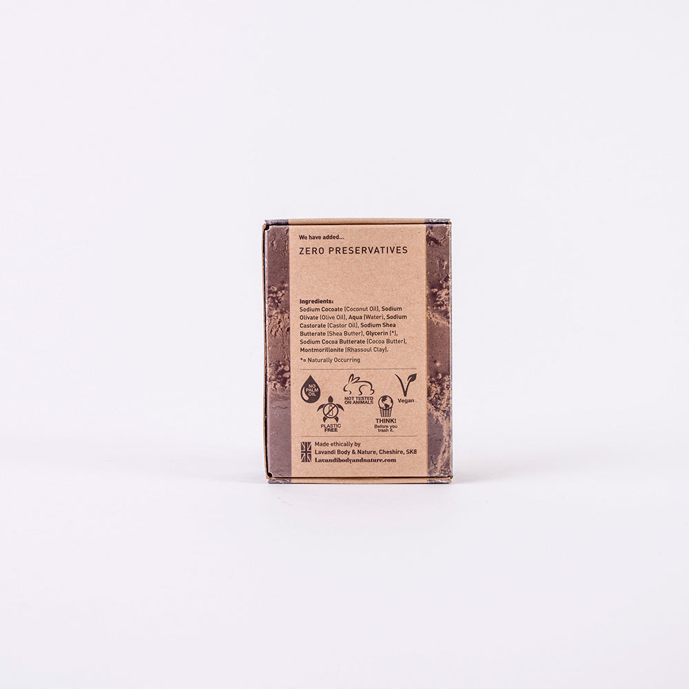 Sodium Cocoate (Coconut Oil), Sodium Olivate (Olive Oil), Aqua (Water), Sodium Castorate (Castor Oil), Sodium Shea Butterate (Shea Butter), Glycerin[*], Sodium Cocoa Butterate (Cocoa Butter), Montmorillonite (Rhassoul Clay)