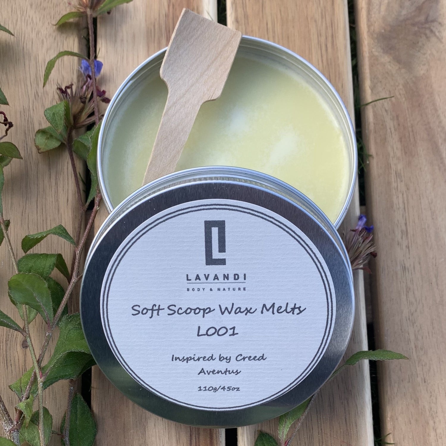 This natural handmade wax melt is inspired by the incredibly popular Aventus. Its accords are smoky, fruity, sweet, leathery, and woody.