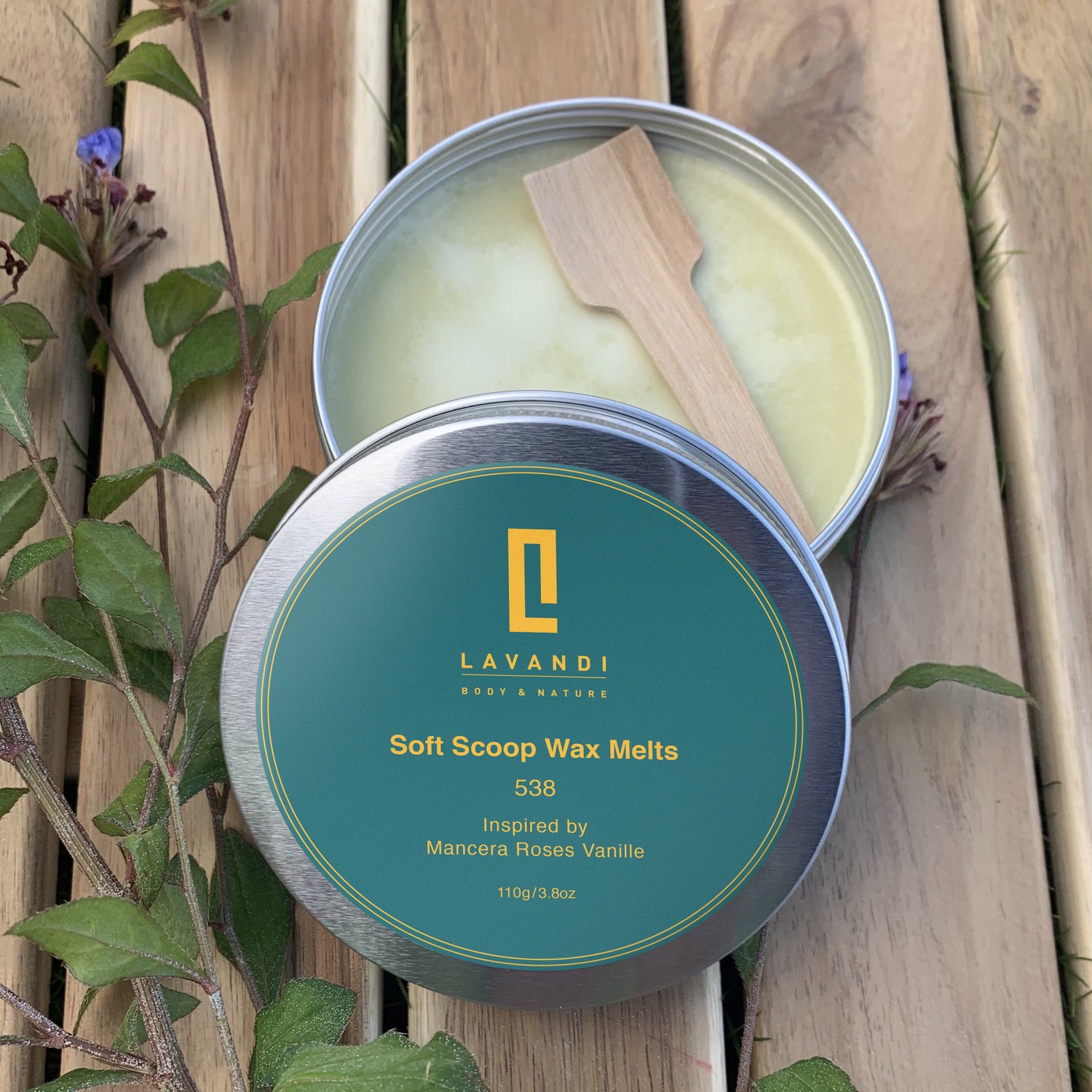 This natural handmade wax melt is inspired by Roses Vanille and has accords of vanilla, rose, and other floral delights.