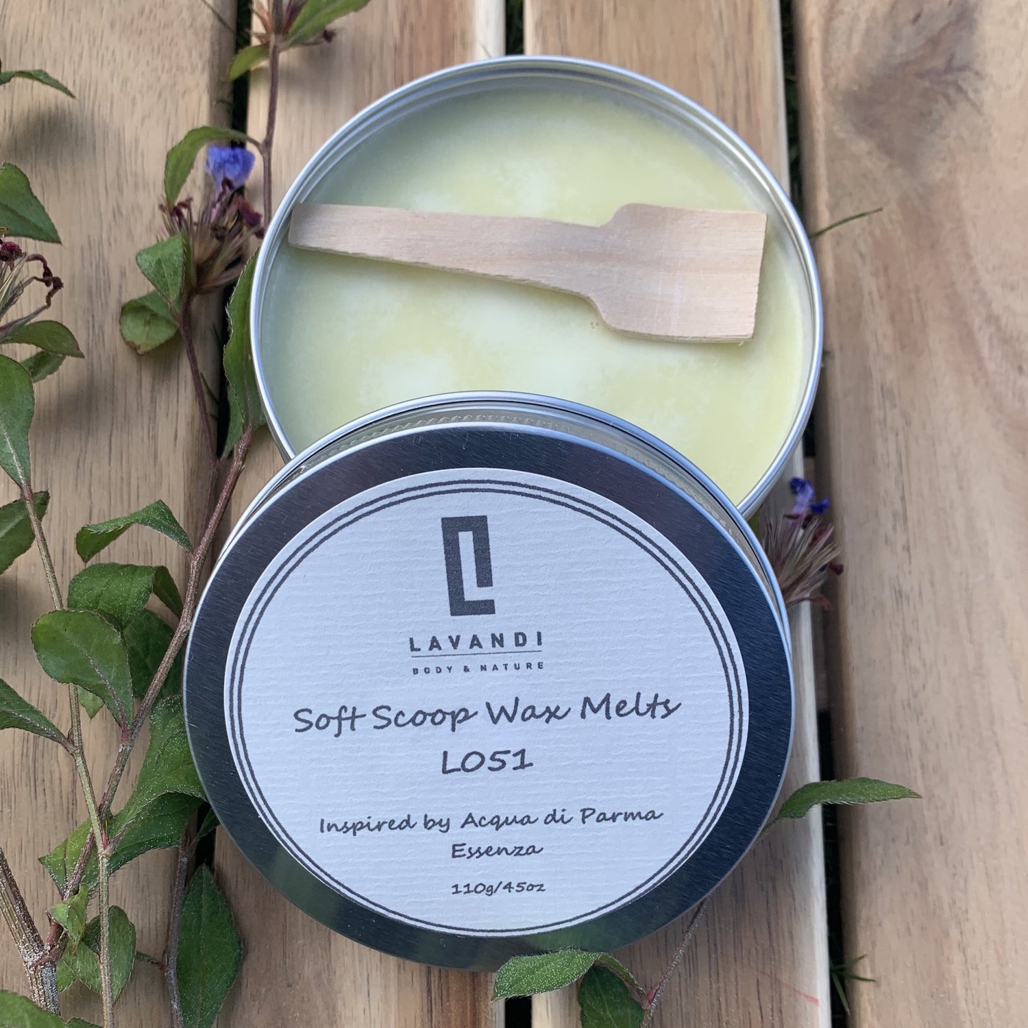 This fragrant wax melt is inspired by Essenza and has accords of citrus, aromatic, fresh spice, and white floral.